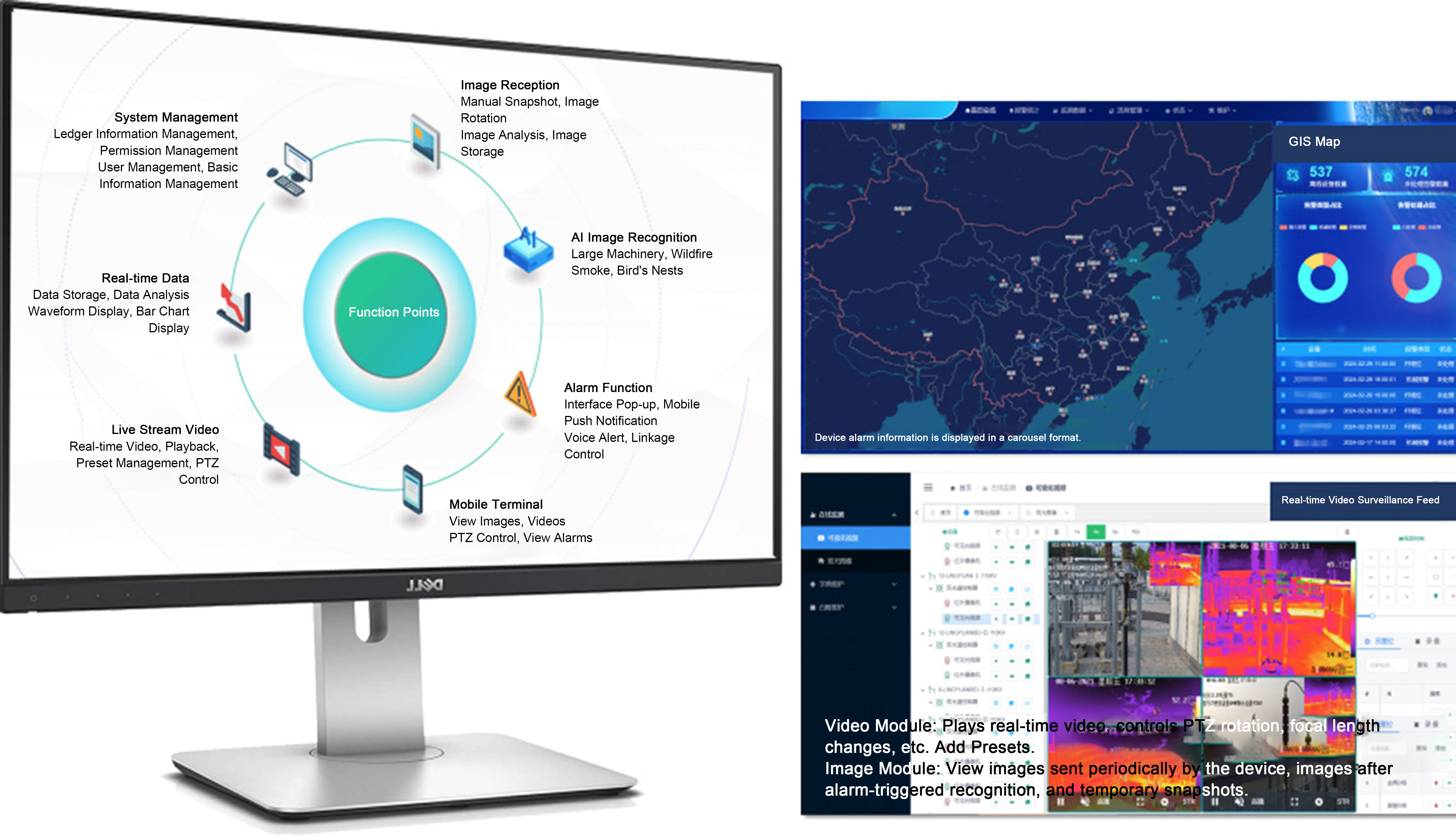 The integrated online monitoring system for transmission lines, in accordance with the State Grid's "three types and two networks" construction requirements, achieves multi-dimensional and precise perception of transmission line operation status through four types of equipment state sensing methods: equipment body monitoring, channel monitoring, intelligent inspection, and mobile operation. It continuously constructs an online monitoring system with panoramic equipment status and intelligent data analysis, providing safety guarantees for the reliable operation of power grid lines.